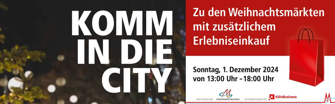 Zum erster Adventswochenende mit verkaufsoffenen Sonntag am 1. Dezember 2024 von 13.00-18.00 Uhr präsentiert sich die Kölner Innenstadt in strahlendem Glanz und weihnachtlichem Flair.